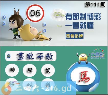 111期开奖时间2025年10月16(星期四)晚9:30开(农历八月廿五马冲鼠) 生肖属性:戊午日;五行属性:火;地支六冲:马冲羊,无猪;六合:羊;三合:狗虎。空亡肖:兔猴。 六合不出:虎牛鼠;三合不出:蛇马龙;应开生肖:兔蛇龙猪马。防:羊鼠 开奖日必开生肖马日:牛猪龙鸡猴鼠 开奖日日柱对应五行戊午日:金土木 开奖日必开生肖戊午:鸡龙牛蛇猴兔 上期狗,必开:马龙猴猪牛兔鼠 《111期》《《香港掛牌之全篇》》 111期正版彩图挂:06爆:马挂牌成语:盡歡而散挂牌出肖:狗猪鼠猴蛇鸡 [释义]尽情欢乐之后,才分别离开。多指聚会、宴饮或游乐。 111期另版香港马会挂牌:06羊 111期马会挂牌32射1541 111期正版数码挂牌:32射:4307壹句真言:汝独何人学神仙(23568) 111期蓝天玄挂牌:22龙 111期四柱《万棹千帆绕江水》 111期藏寶圖新:始觉江山近故乡老:曲阑干外天如水禁:兔禁:6尾玄機字:《间》 111期跑狗:【高】危崖千尺,直上雲高。俯看群巒,境勝仙巢。玄機測字:【致】 111期香港关门联:三长两短相到转,二一做五时有数。解[矛][5436] 111期香港开门联:反咬一口蛇为主,本期要钱看绿蓝。解[汪][1083] 111期另香港关门联:二月春风迎金猪,远望三一立一五解[嚚][69721] 111期另香港开门联:不是真人不明了,无恶不作真可恶解[架][48309] 111期内部万花来料:万花开在十一合三四七到,红绿色彩尽显鸡藏马居 111期台湾玄门挂牌:[斗酒娱乐][235] 111期挂历诗:二将交锋在沙场,决胜雌雄使刀枪。 111期火车头:烧伤猴。诗:牛死龙伤,今期生肖住门庭。 111期火烧图解:火烧“猴”。诗:多为主儿守富贵,门前冷落到天明。 111期无字天书:好马今期走在先,好狗独守龙门前。鼠20 111期最老版无字天书:各有特色守本期,各为主子守命来。牛29 111期九宫禁肖:牛 111期必中人物:周延儒 111期二字经:声援 111期六合信箱紅字:借鏡觀形暗码:04072131 111期一語中特:三跪九叩 111期挂牌绝杀料/挂牌绝杀:兔 111期正版黄大仙射箭图:03射2544 111期另版黄大仙射箭图:20射3810 111期香港牌:[引蛇出洞][465] 111期内部运程曰:乾坤倒转。配密码:{134} 111期香港信封挂牌:赶尽杀绝不放宽(子时上下)加3417 111期波段预测:01----2730--39 111期特码大小单双句:万棹千帆绕江水解?? 111期特码大小单双句:举足轻重万人观解?? 111期铁算盘:小丫环(看准玄机来投注)开:? 111期香港版《香港六合天书挂牌》天书:有一有二还缺八,当然说尾也将来。天码:05、18、24、26、36、44 111期(香港版)六合对联诗:横联:二九点头上联:一七大顺六来一下联:猪前虎尾必中特解:竹。密码:29830 111期正版马会大门口挂牌一句话:本期东三西七在变通【挂18送05】开 111期另类马会大门口挂牌一句话:猴羊虎马浮烟树【马会送47】开 111期香港生活开门联:看亦跳亦飞的生肖,天天开心无人敌解[亦][87402] 111期香港生活关门联:三板三眼数四宫,有加无减数成九卦解[字][35260]