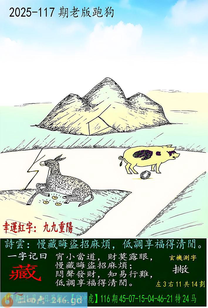 本帖最后由山丘于2025-11-422:37编辑 117期老版跑狗一字记之曰:【藏】 诗云:慢藏晦盗招麻烦,低调享福得清闲。 宵小当道,财莫露眼,慢藏晦盗招麻烦; 闷声发财,知易行难,低调享福得清闲。 是大意露财?高调炫富?