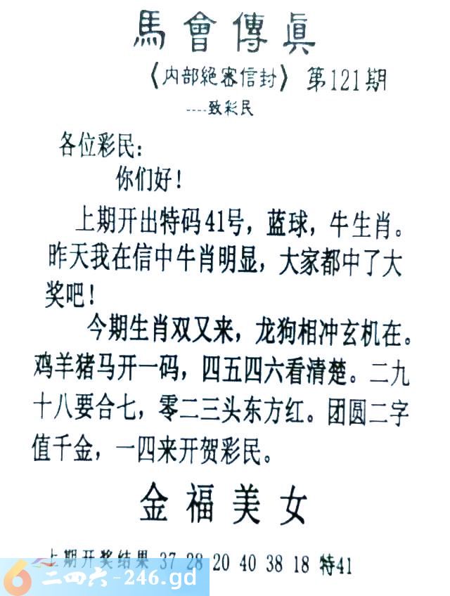 121期:首发推荐:≮馬會傳眞≯→(香港正版)