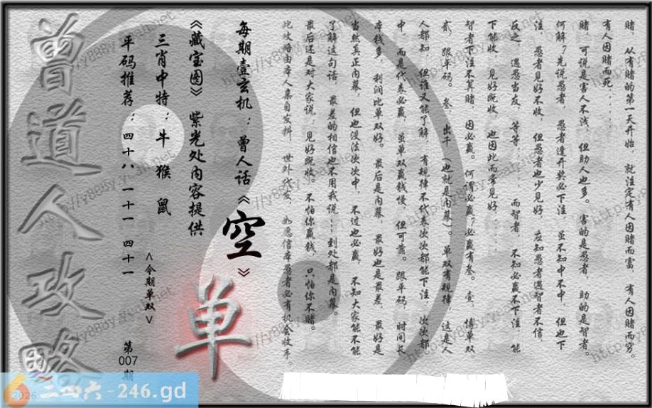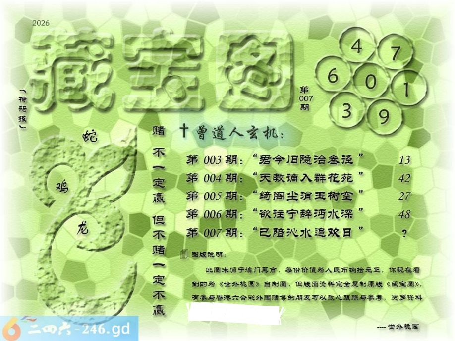 007期藏寶圖 新:已陪沁水追欢日 老:少小虽非投笔吏 禁:猪禁:2尾玄機字:《空》