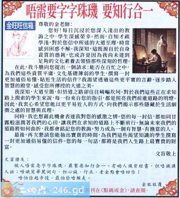 012期:金旺旺信箱彩民推荐→→《唔需要字字珠璣 要知行合一》