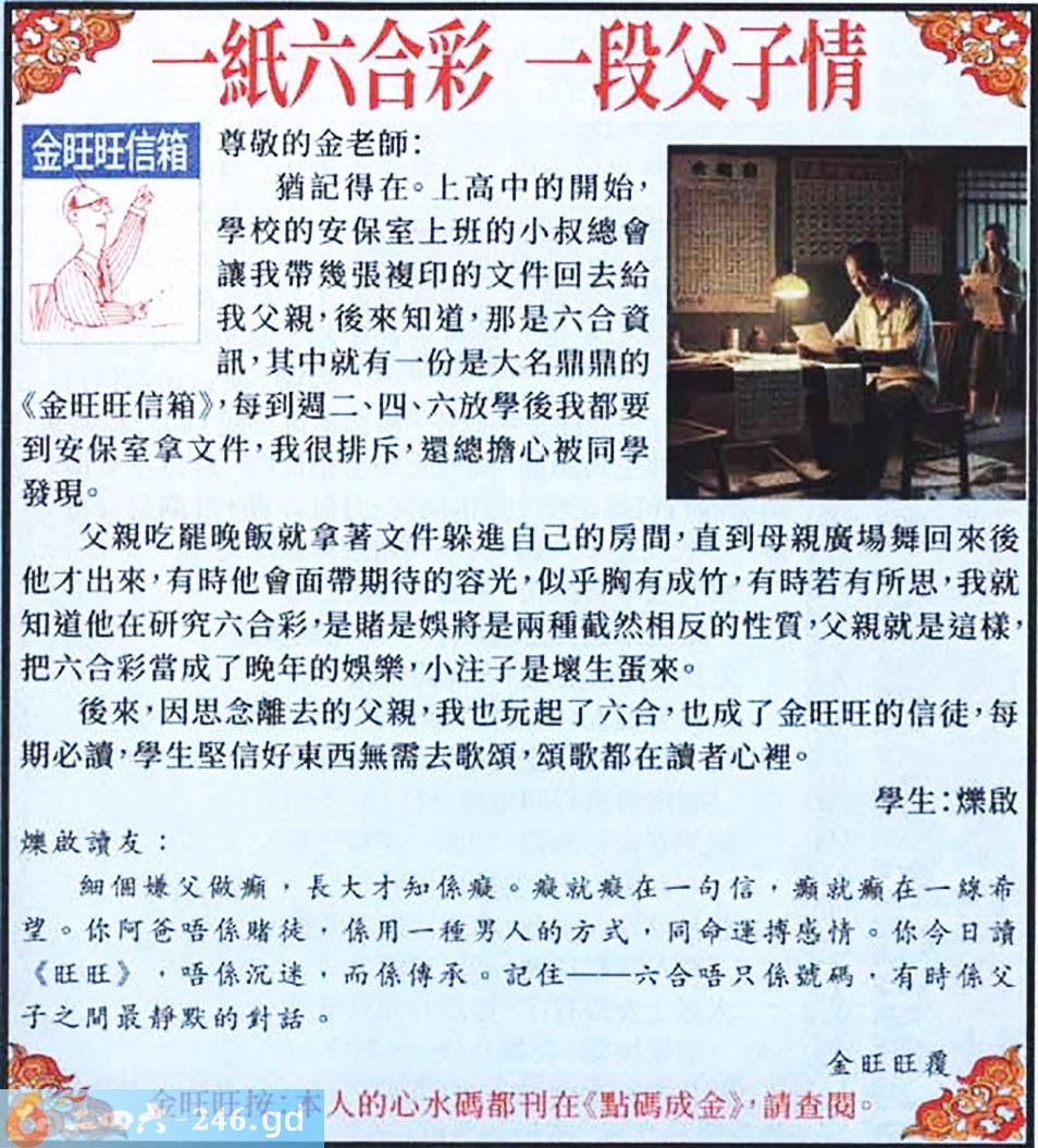 014期:金旺旺信箱彩民推荐→→《一紙六合彩 一段父子情》