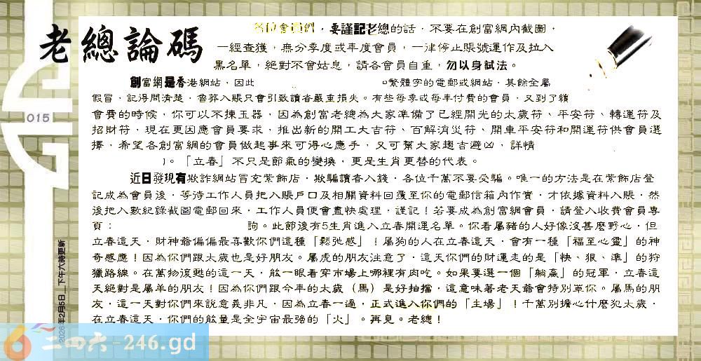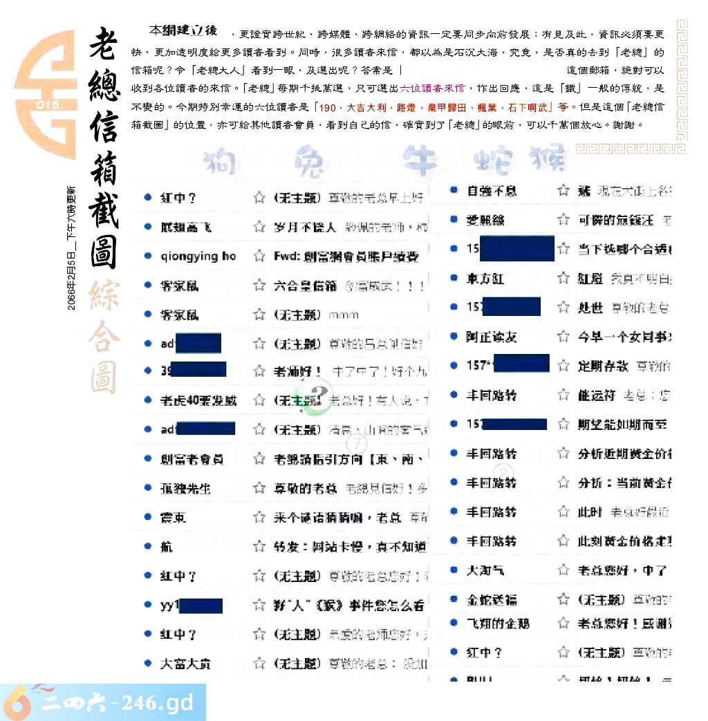 015期:六合皇金句/老总论码/萧公子/林大师/五行夺码/老总信箱截图