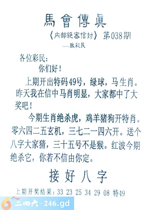 038期:首发推荐:≮馬會傳眞≯→(香港正版)