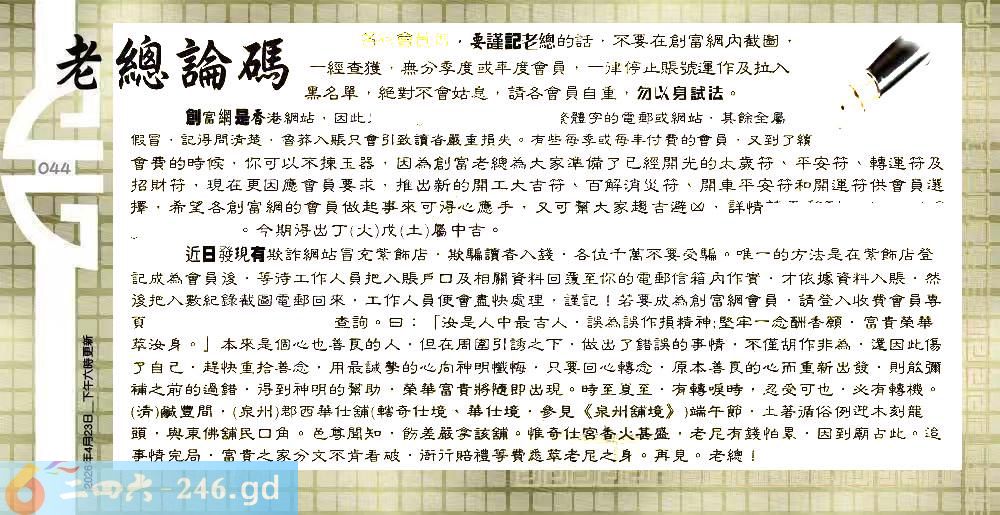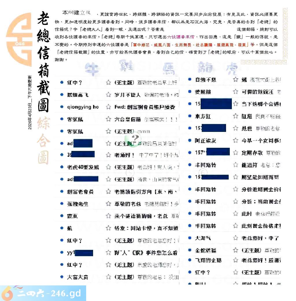 044期:六合皇金句/老总论码/萧公子/林大师/五行夺码/老总信箱截图